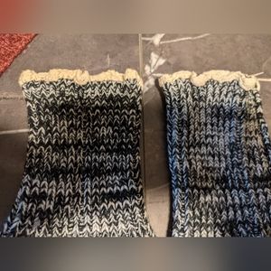 ❄️ Women's Gray and Black Knitted Boot Cuffs with Cream colored trim