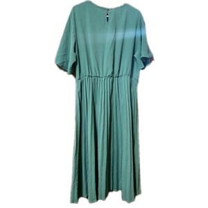 Womens Green 2X Elegant Pleated Dress