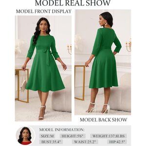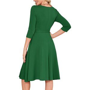 Women's Green 3/4 Sleeve Vintage Flattering A-line Vintage Cocktail Dresses