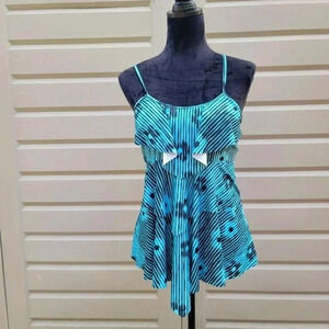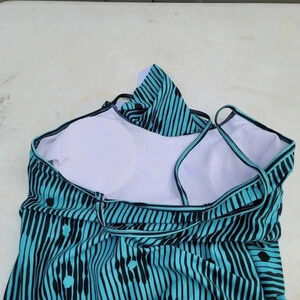 Womens Green Black Layered Ruffle Tankini Swim Top Sz Medium M