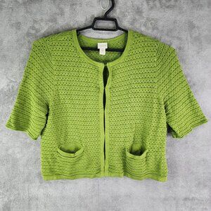 Womens Green Chicos Cardigan Sweater Short Sleeve Round Neck Size 2 (L)