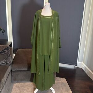 Women’s Green Chiffon 3 Piece Formal Mother of the Bride Pants Suit Size 18W NEW
