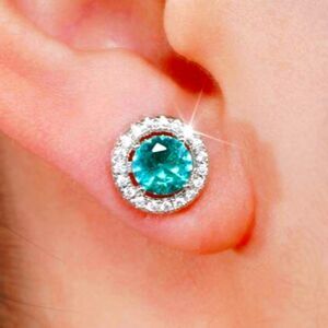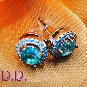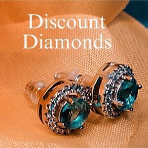 Womens Green & Clear White Moissanite Stud Earrings on 925 Sterling Silver