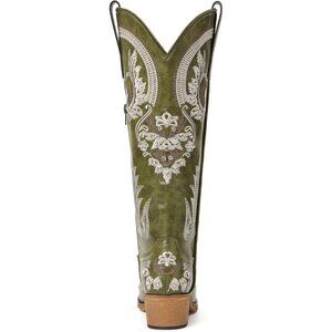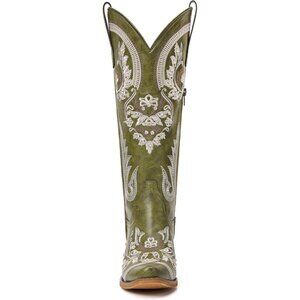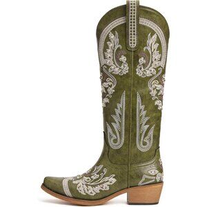 Women's Green Embroidered Rhinestones Knee High Pointed Toe Cowgirl Boots