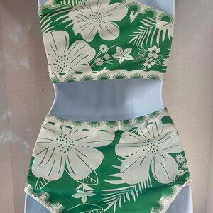 Women's Green Floral Print One Shoulder High Waist Bikini Set - SZ SM