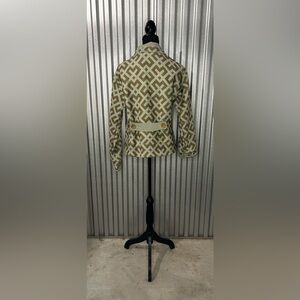 Women’s Green Geometric Retro Maralyce Ferree Polyester Button Down Coat Small
