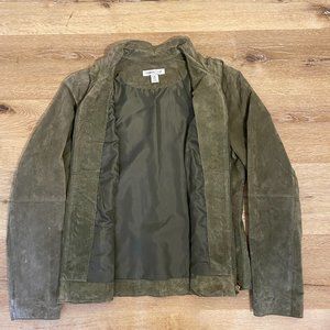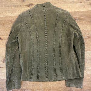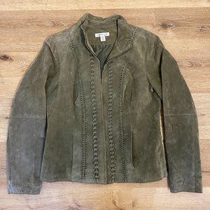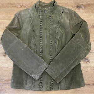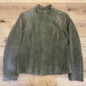 Women's Green Leather Boho Suede Jacket, Coldwater Creek Braided Leather Size M