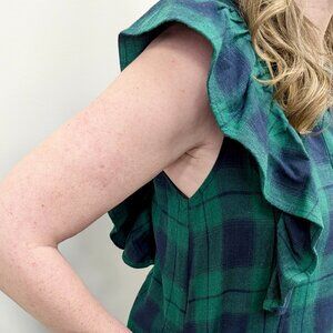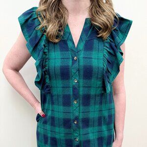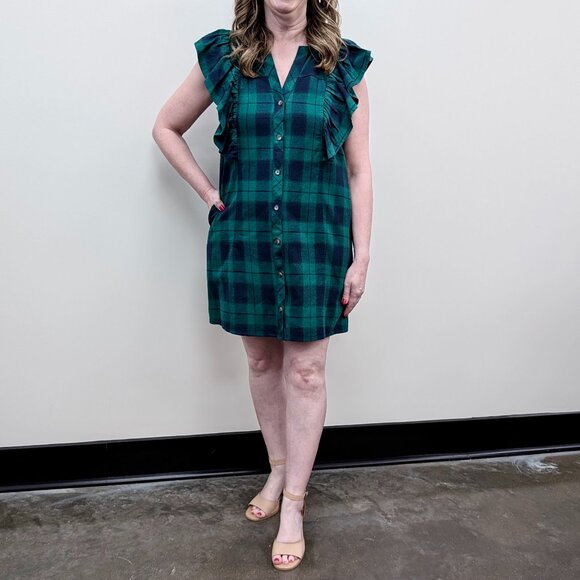Women's Green Navy Tartan Plaid Mini Dress Entro Size Large NWT