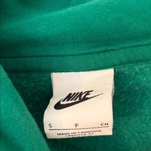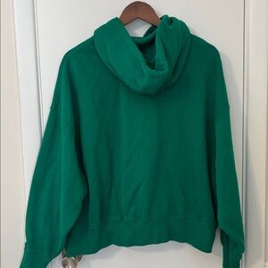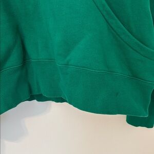 Good condition overall, has a small black mark on the front as shown in picture and a small faded mark as shown in picture. Size small. Medium green color. A little brighter than shows in pictures. Oversized cropped hoodie