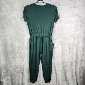 Womens Green Pretty Garden Drawstring Waist Jumpsuit V Neck Faux Wrap Size XL