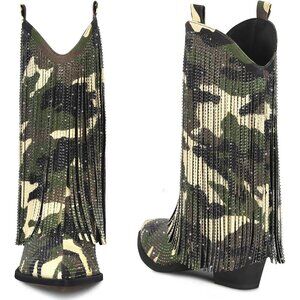These western cowboy ankle boots are suitable for every girl, combining fashion and classic style. Adorned with sparkly rhinestones and trendy fringe, they will keep you feeling good and sparkling all day long.