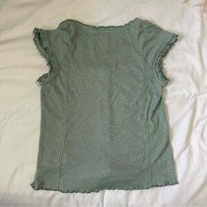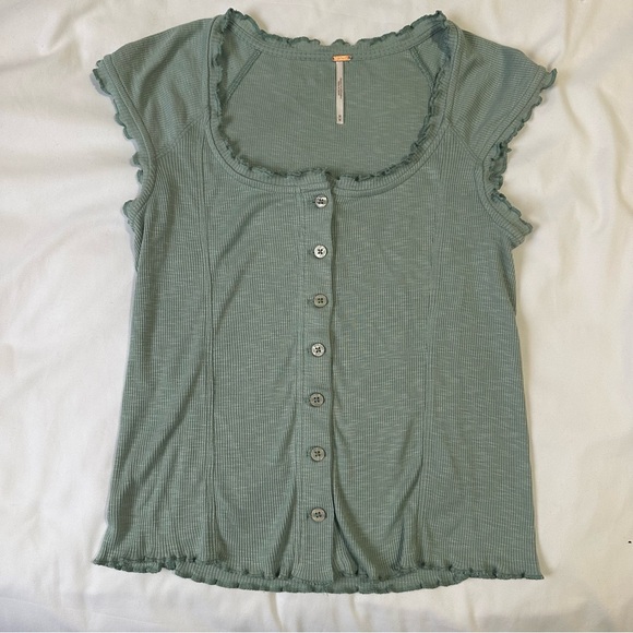 Elevate your style with this chic green ruffle button-down top. Perfect for any occasion, this top offers a flattering fit and a touch of elegance.