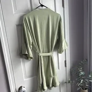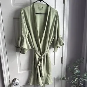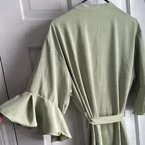 Elegant green robe with ruffle sleeves,Soft and comfortable fabric. One size fits all.