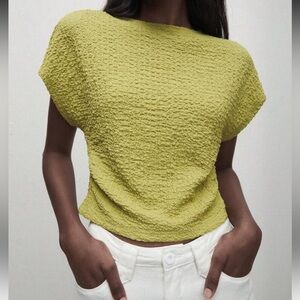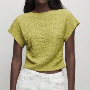 Women's Green Short Cap/Batwing Sleeve T-Shirt With Ruched Waist | Size S | NWT