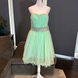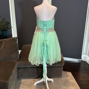 Women’s Mint Green Short Homecoming Prom Party Dress with a Sweetheart Neckline, Sparkly Waist Band and Corset Back
