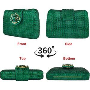 Women's Green Sparkly Rhinestone Unique Evening Floral Clutch Shoulder Handbag
