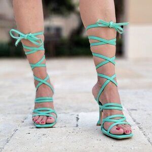 Women's Green Strappy Pyramid Heel Gladiator Sandals