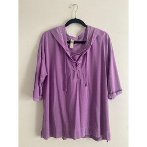 This women's lounge set combines comfort and elegance with its soft cotton blend material and relaxed fit. Featuring a hooded lace-up top and new with tags pants, this set is ideal for casual wear or relaxation. The stylish design offers functionality and a cozy feel for versatility.