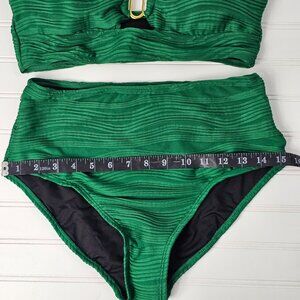 Women's Green Textured Cut Out Front High Waisted Bikini Set Size M NWOT