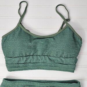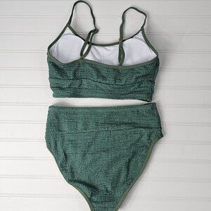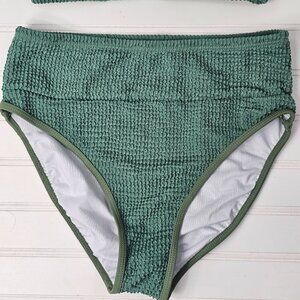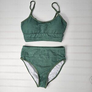 Women's Green Textured Smocked Mid Rise Scoop Neck Bikini Set Size XS NWOT