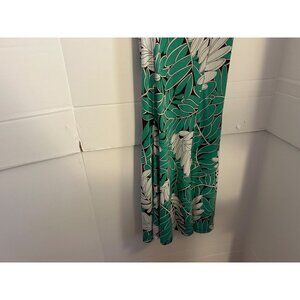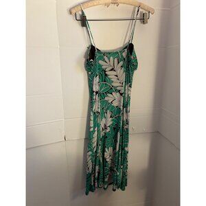 Women’s Green Tropical Leaf Print Babydoll Sundress Small Spaghetti Strap Summer