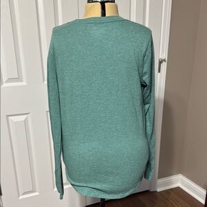 Stylish and comfortable green V-neck top perfect for any occasion. Appears to have “balled” up but it came this way. It’s part of the design. Smoke free home.