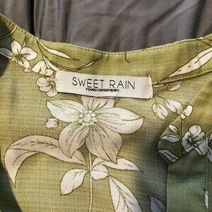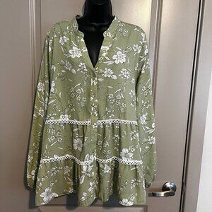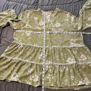 Women's Green & White Long Sleeve Floral Blouse. Size tag torn off but I believe this is a 2X - measurements in pics. Sweet Rain Boutique brand.