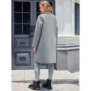 Women's Grey Double Breasted Pea Coat Mid Long Fall Winter Trench Overcoat