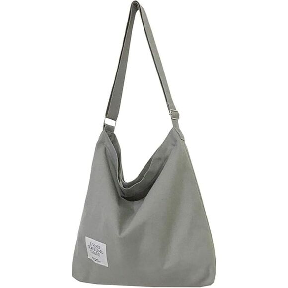 Women's Grey Imported Canvas Retro Large Size Shoulder Crossbody Tote Bag