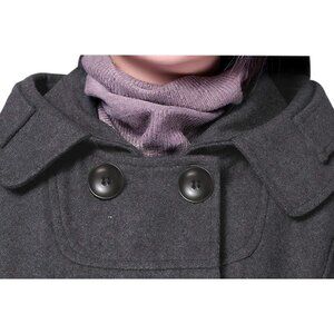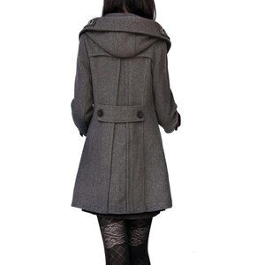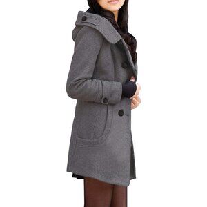 Women's Grey Warm Double Breasted Wool Pea Coat Trench Coat Jacket with Hood