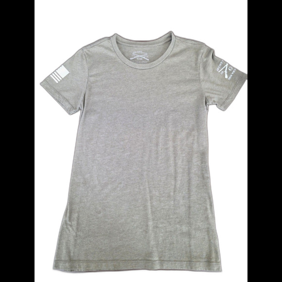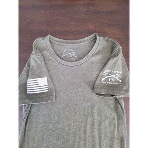 Womens Grunt Style Fitted T Shirt Sz L Green W White Flag
