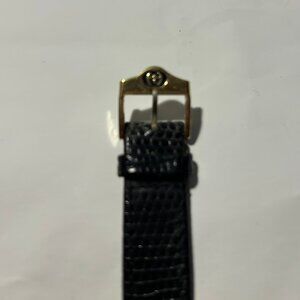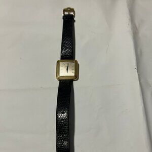 PRE-OWNED, WATCH NEEDS BATTERY, HARDWARE HAS SCRATCH MARKS ON THE BACK. THE BUCKLE HAS LIGHT MARKS ON THE BACK SIDE AND THE PINHOLE. SLIGHT MARKS ON THE GLASS WATCH FACE, NOT VERY NOTICEABLE (SEE PICS) OTHERWISE; IN GOOD CONDITION.