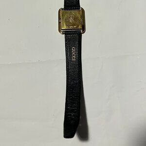 Womens Gucci Brown Gold-Plated Square Case 14 GG Buckle Leather Band Wristwatch