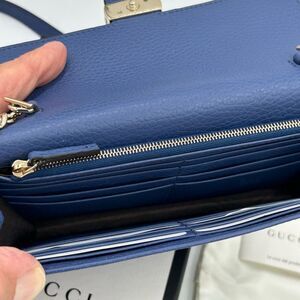 Women’s Gucci Caspian blue interlocking G wallet on a chain made in Italy