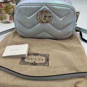 Stunning Gucci medium Marmont shoulder bag with a gorgeous iridescent finish. This bag is a true fashion chameleon, ready to turn heads and complement any outfit!