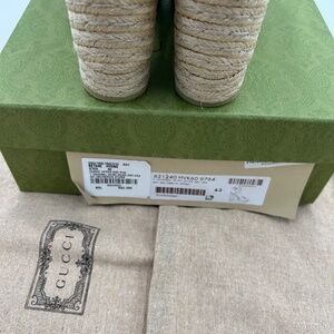 Women’s Gucci, Pilar GG ankle tie, espadrille platform wedge sandal size 42