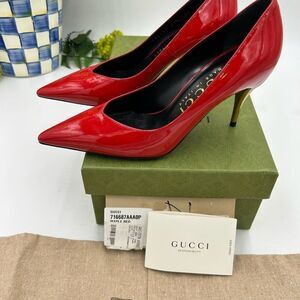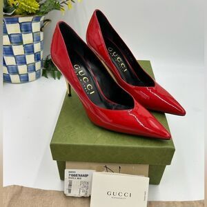 Women’s Gucci red patent leather pumps size 37.5 made in Italy