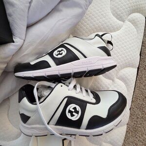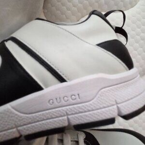 Brand new, never worn black and white Gucci sneakers. New in box. Size 38. Includes box and dusters. 2nd set of laces.