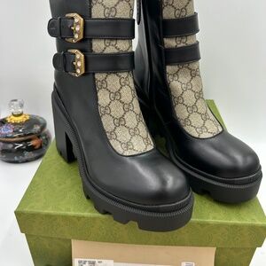 Women’s Gucci supreme ankle boots with rhinestone studded buckles size 41.5