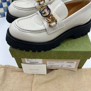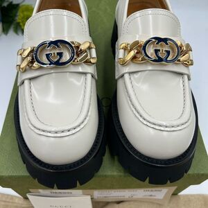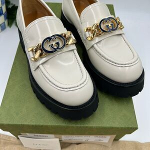 Women's Gucci Jeanne logo chain patent leather loafers size 38.5 made in Italy