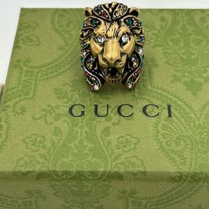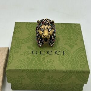Women's Gucci Lionhead motif multicolor stone ring size 5, made in Italy
