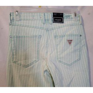 Women's Guess 1981 Skinny High Rise Vintage Aqua Striped Jeans Size 26*29, NWT