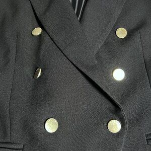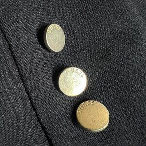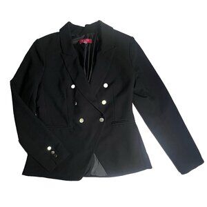 Women's Guess Black Fitted Blazer Jacket LARGE Double Breasted Gold Buttons