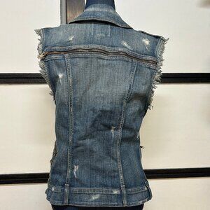 Women's Guess Distressed Denim Zipper Vest w/Pockets, Size Small