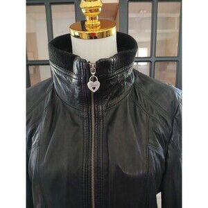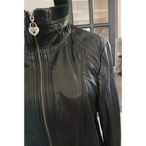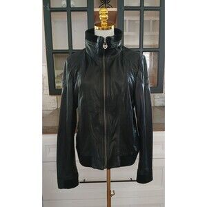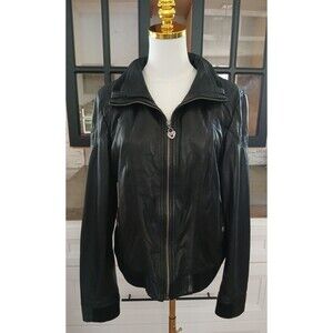 Women's Guess Genuine Leather Jacket Size XL Moto Biker Black Classic Soft