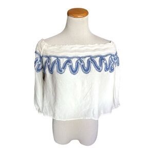Womens Guess Jeans Off Shoulder Embroidered Lace Boho 3/4 Sleeve Top - Sz M