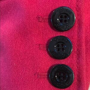 Hot pink Guess Los Angeles toggle coat with black detail. Nice hot pink linking with delicate roses. Size Medium. 60% wool.