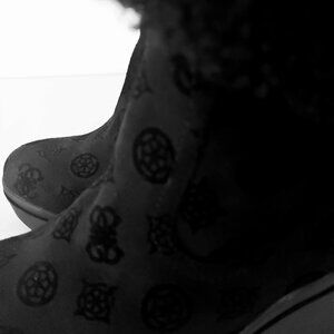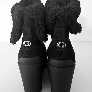 Women's Guess Tabloid Black Logo Wedge Bootie 7.5M NWOT