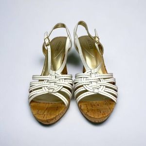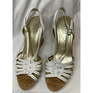 Womens Guess White Platform Sandal 8 Cork Leather 4 Inch Summer Straps Wedge