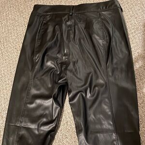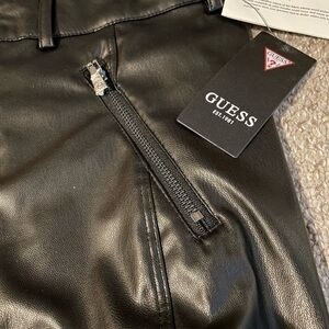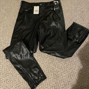 Womens Guess faux leather pants. Zip front pockets. Zip at the ankle. Inseam 28”.